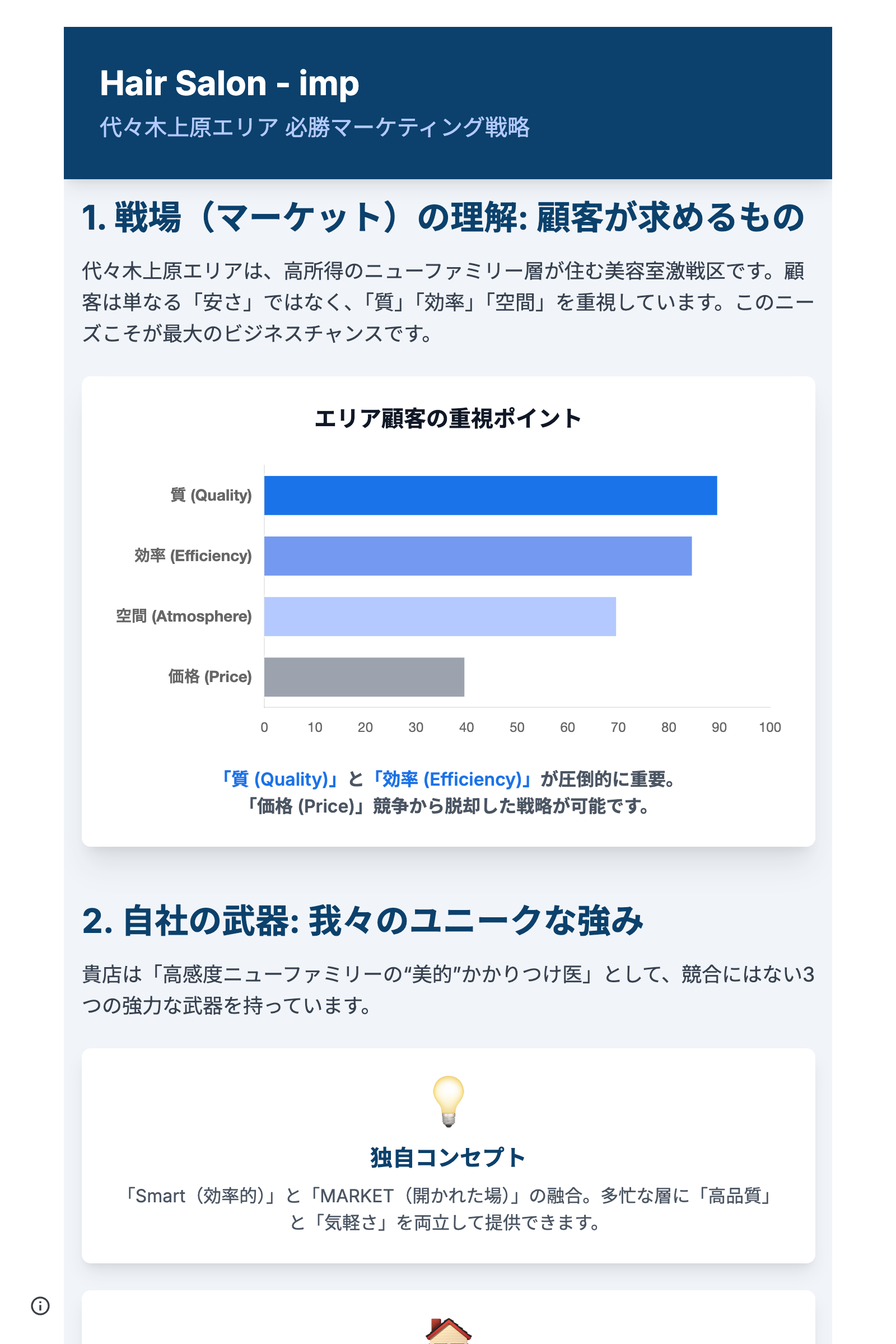 商売繁盛を運ぶWeb集客AIツール 「imp.」は「専門知識が無い」「時間が無い」「予算が無い」をすべて解消し、売上アップに貢献します。戦略レポート、集客ページと広告がセットで月額14,800円~